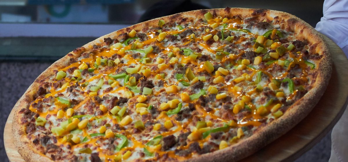 Разрабатывая рецептуру пиццы, повара Chopar старались сделать ее по спортивному питательной и вкусной! В ее состав вошли соусы сырный и «Болоньезе», говяжий фарш и сыр моцарелла.