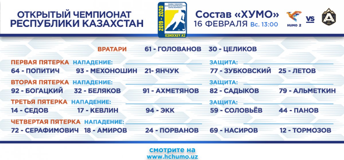 Впереди команду «Хумо-2» ждут два выездных матча с «Горняком» из Рудного. Игры пройдут 19 и 20 февраля в ледовом дворце «Рудный». Ссылки на онлайн-трансляции мы обязательно разместим на нашем сайте и в социальных сетях.